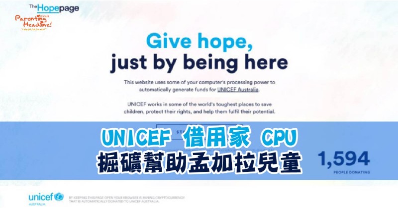 「The Hopepage」使用了 Coinhive 挖礦引擎,在得到用家允許後,會以用家的 CPU 運算能力來挖掘門羅幣,用家還可以選擇捐贈多少運算能力(20%到80%之間)。 加密貨幣會自動捐贈給聯合國兒童基金會,為兒童提安全飲用水,營養食品和疫苗。而網頁名為「Hopepage」,目的是希望用家將「Hopepage」設定為自己瀏覽器的「H...7 year ago