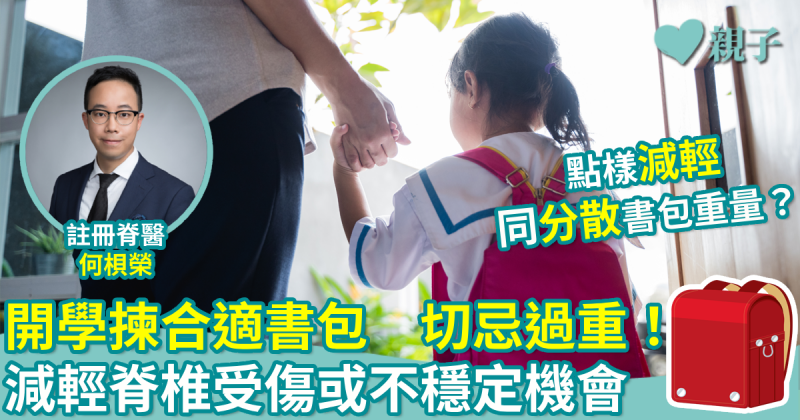 臨近開學,不少家長都會為小朋友買新書包。除了要選擇一個合適的書包,亦需留意不要過重!不然仍在發育的小朋友容易因而引致脊椎受傷。
