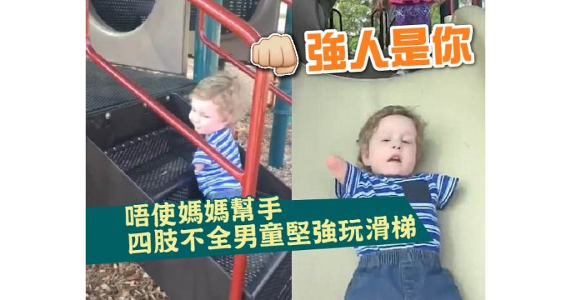 日前,Camden出動到公園玩耍。片段中他不斷扭動身體,靠着短短的手臂及下巴,一級一級、慢慢爬上樓梯。 (Camden慢慢扭動身體爬上梯級。) 過程毫不容易,在旁的外婆甚至問他需不需要幫忙,但Camden總是斷然拒絕,其獨立、不屈不撓的精神令媽媽倍感欣慰:「Camden很棒,他能夠做的事很多,絕對讓你難以置信。」 (溜滑梯是小...8 year ago